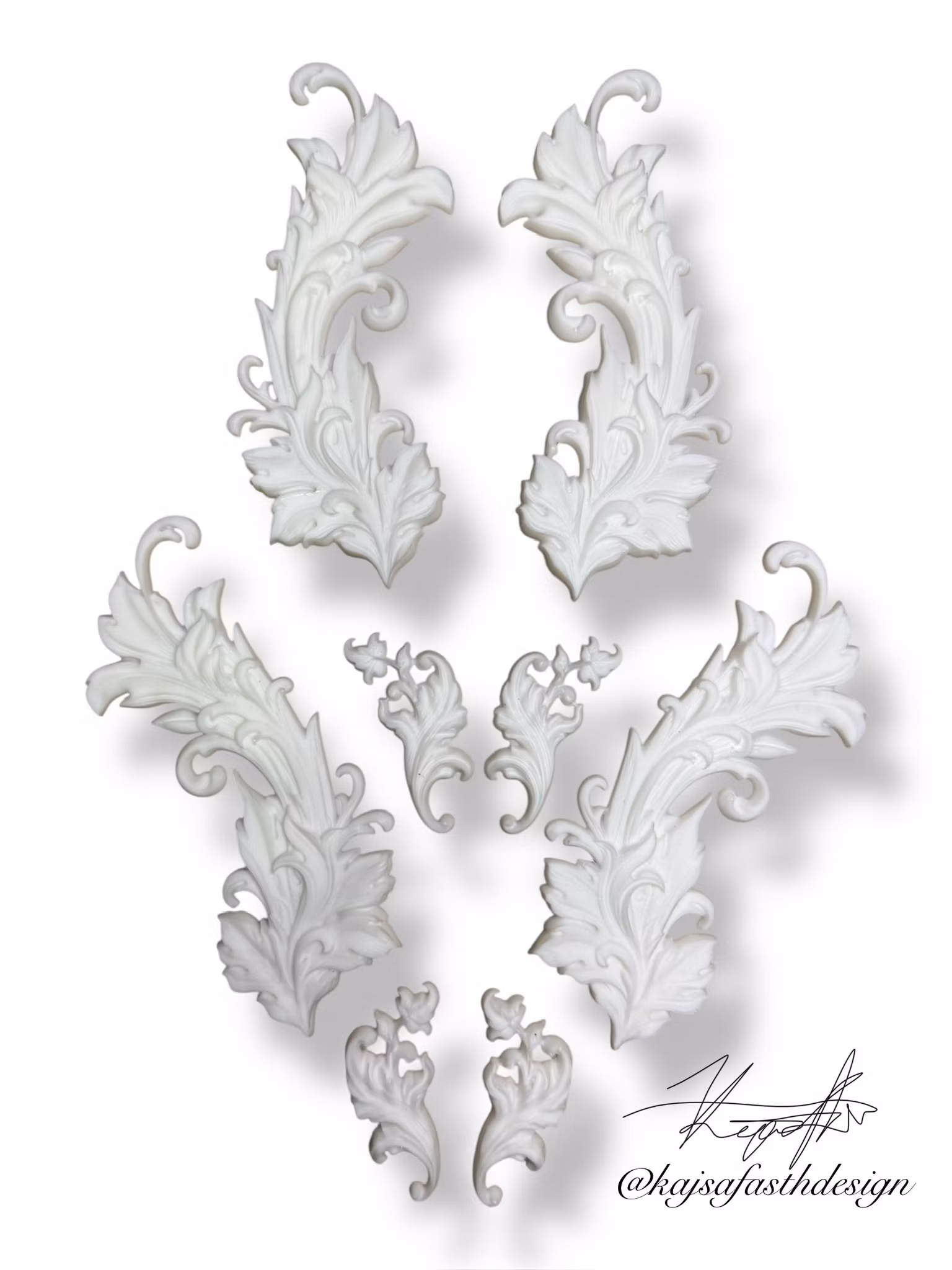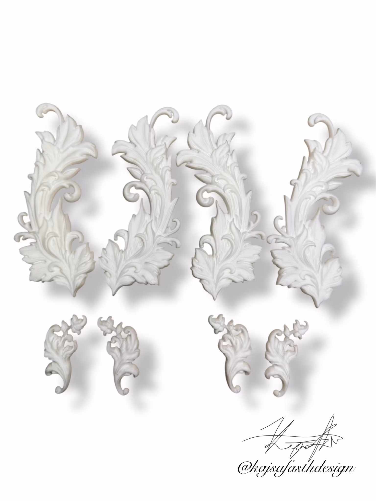 Dekorativa ornament i hela 8 delar. Dekorera med dessa vackra detaljer på tex en bok, möbler eller vad fantasin inspirerar dig med. 4 st större ornament (2 st p