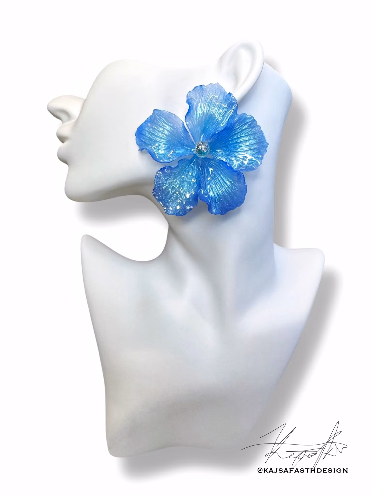 Konstsmycke örhängen "Blue Dream Spirit"Färgsprakande hibiskusörhängen som med sina vackra blå färger & grönblå kristall pistill ger dem en helt magisk look