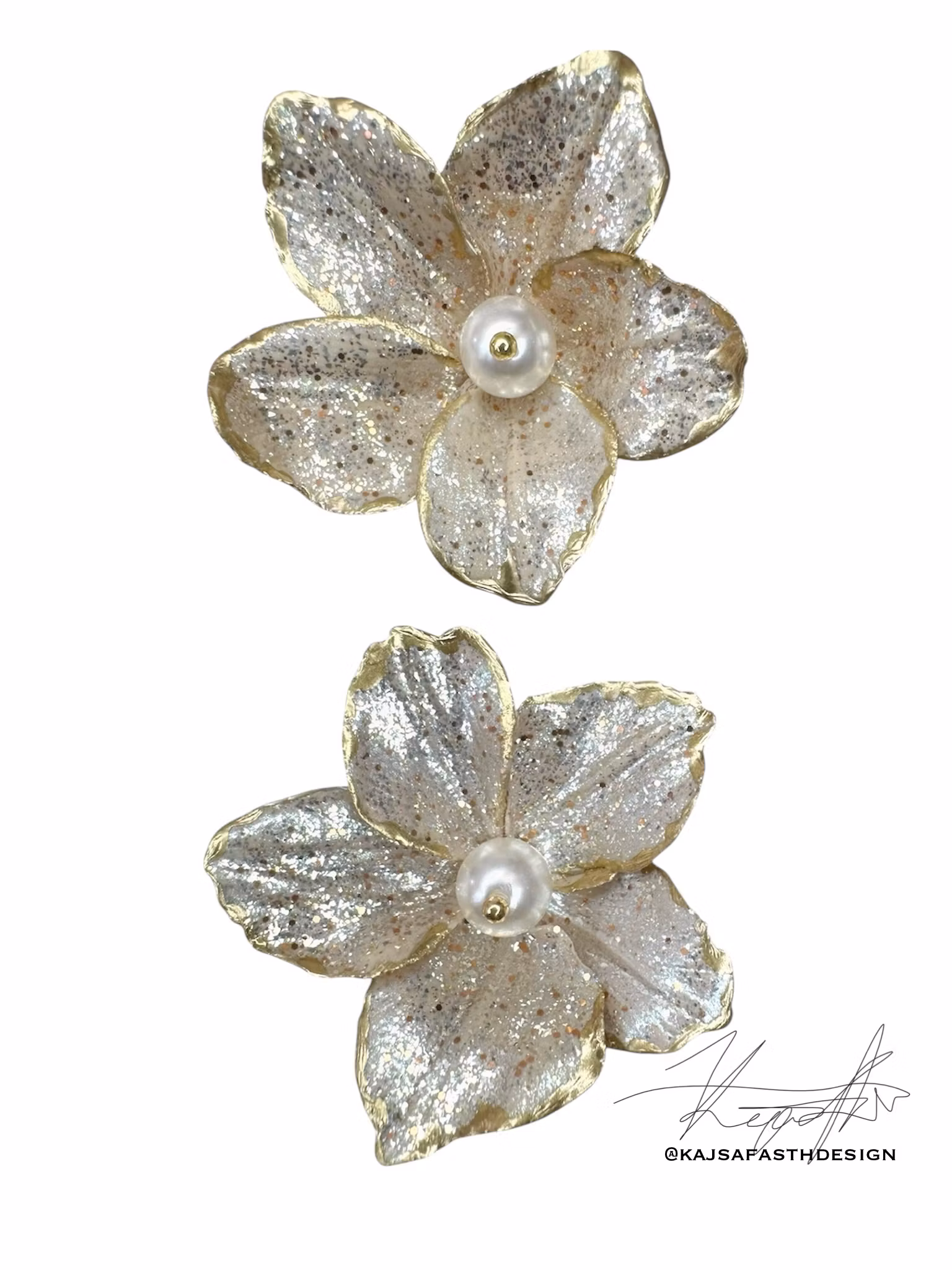 Dessa fantastiska örhängen har en magisk blomdesign med en champagne färgad bas, alla bladen i blomman är prydda med silver och guldskimmer för en riktigt bländande festlook. Blommorna är inramad med en guldfärg, och centrerad med en vacker vit Swarovski-pärla.