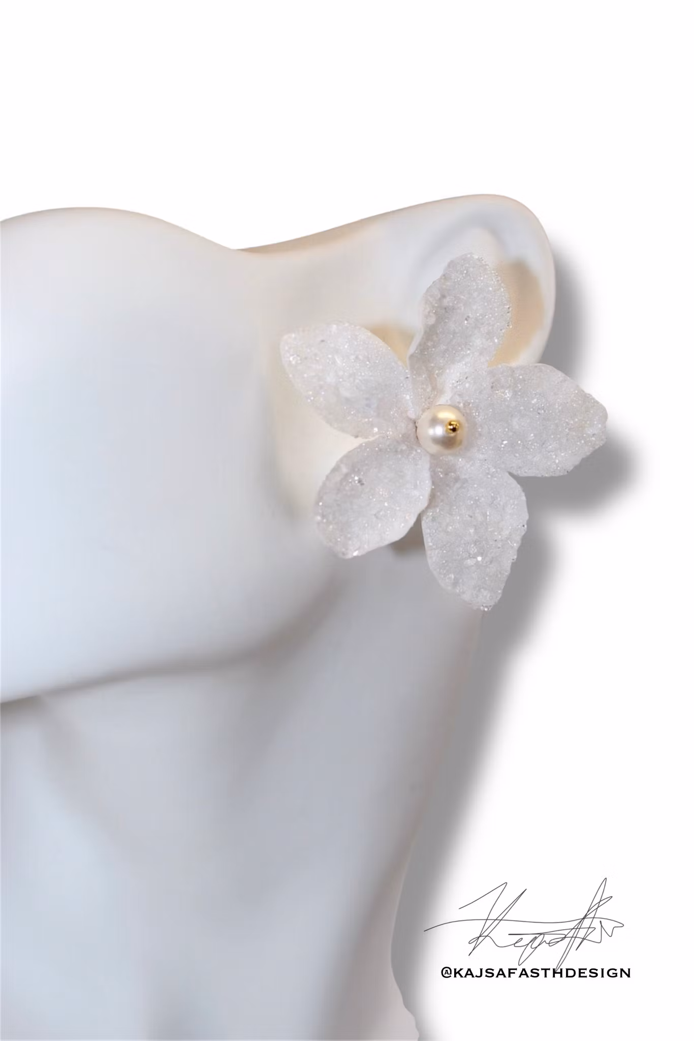 Material: Polymerlera, sugarglas, Swarovski sugar crystal, Swarovski pärlor i vitt.