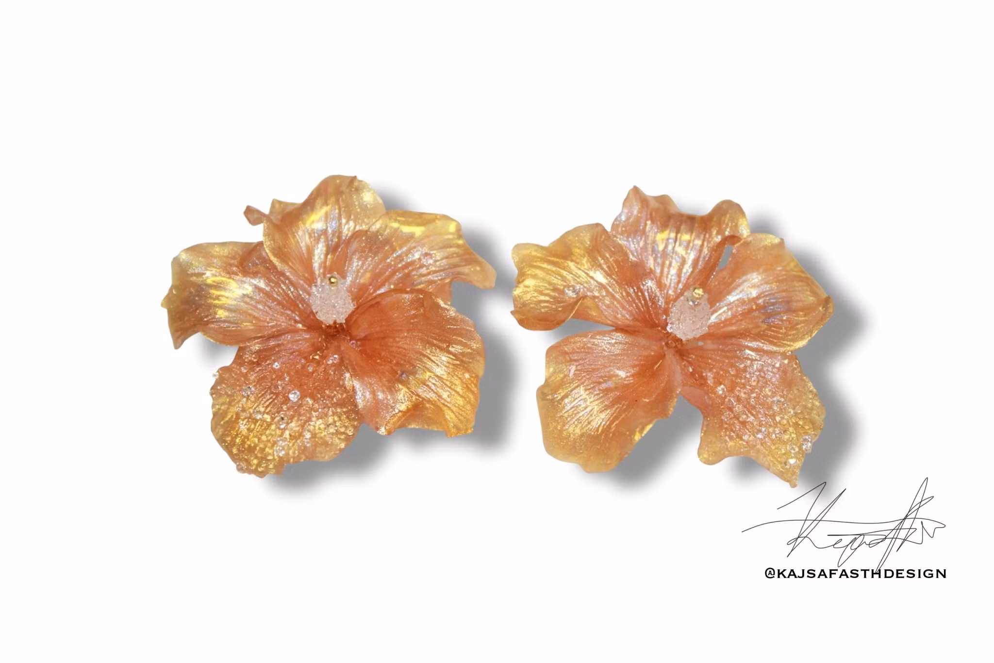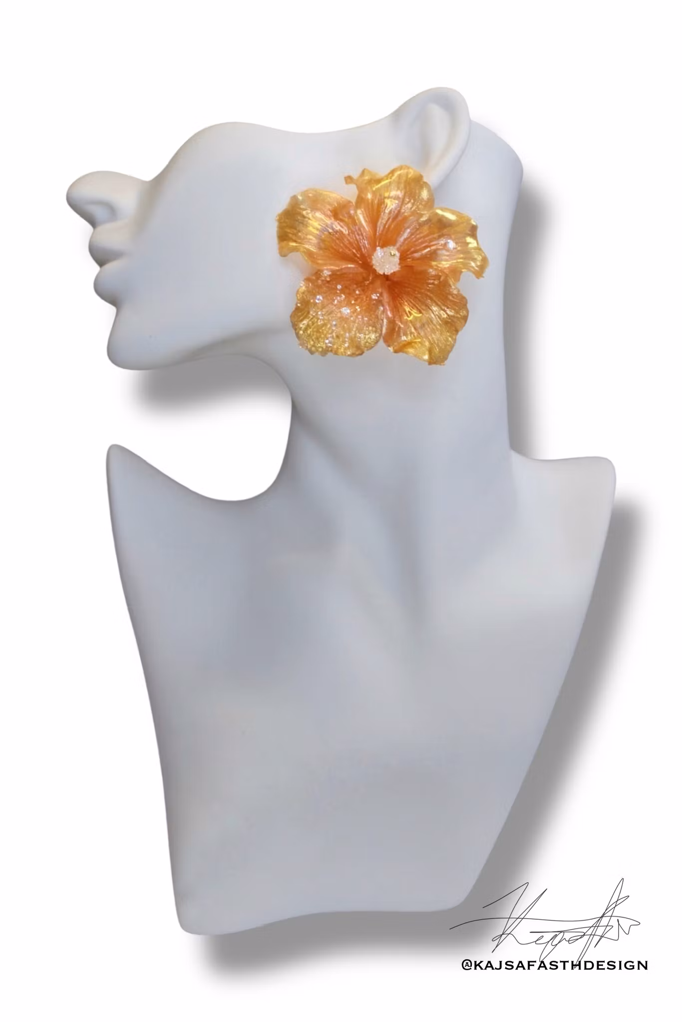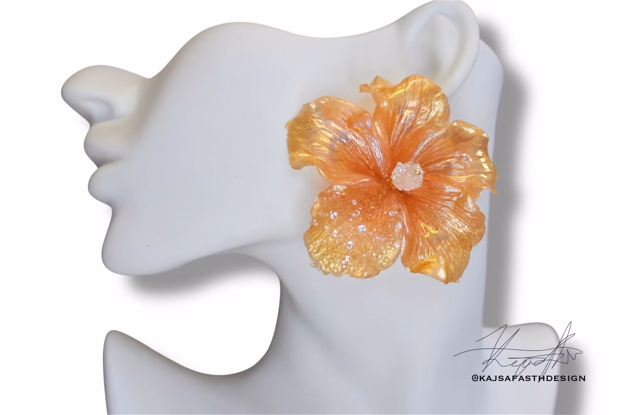 Konstsmycke Örhängen hibiskus "Peachy Butt & Golden Delicious"Ja du läste rätt, men det var det namn som dök upp när dessa godbitar skulle få ett namn. Dom