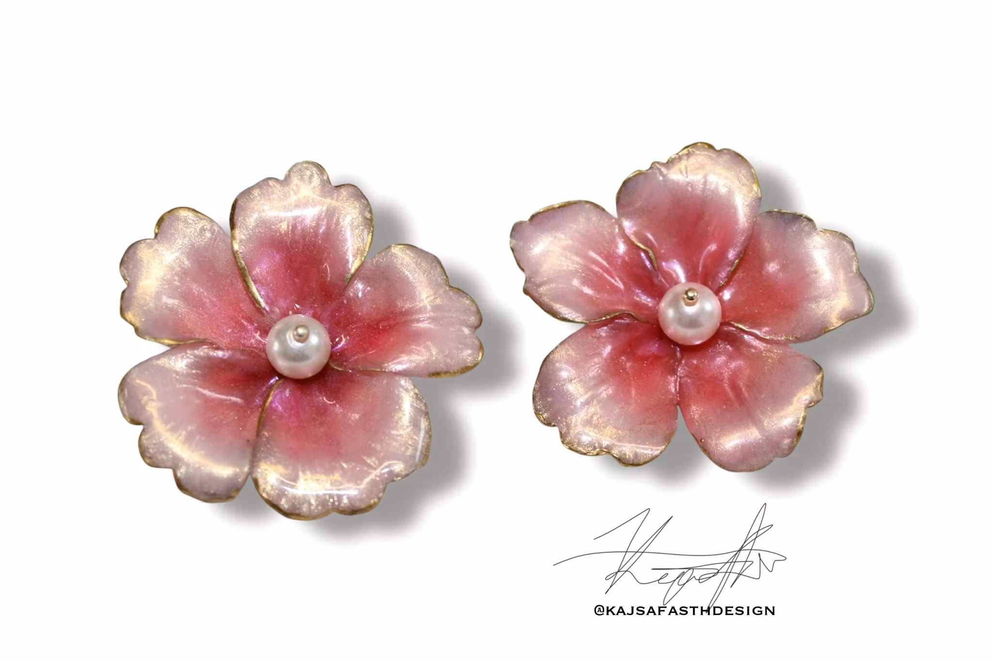 Toner av rosa, ljus och mörk går dessa otroligt söta blommor som bärs upp som en romantisk skönhet året runt om man så vill. Ser ut som små konstverk med sin vackra inramning av guld och allt passar perfekt tillsammans och passar dig som vill ha något mer diskret då dess storlek är perfekt för lugna hemmadagar, kanske en dag i trädgården eller när du läser en bok. När du vill ha något vackert bara för dig själv.